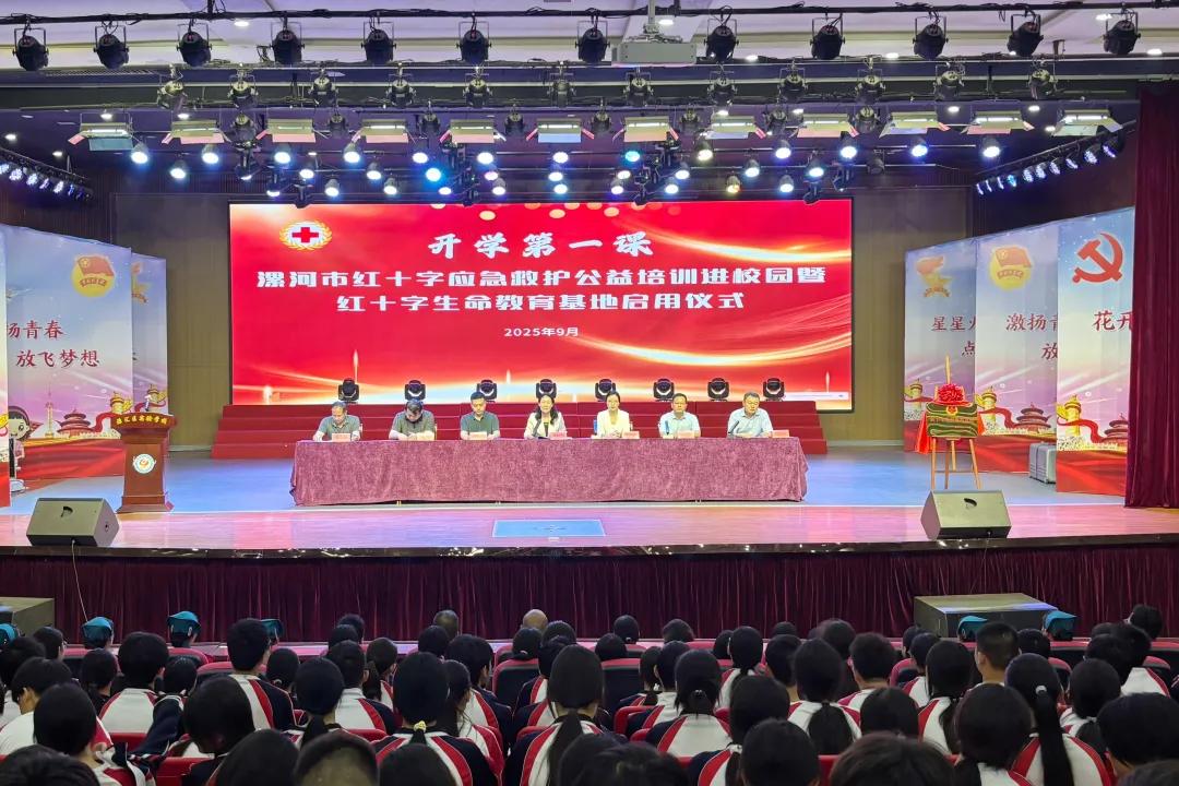 9月4日上午,漯河市紅十字會、漯河市中醫(yī)院、源匯區(qū)實驗學(xué)校,聯(lián)合舉行開學(xué)第一課——漯河市紅十字應(yīng)急救護(hù)公益培訓(xùn)進(jìn)校園暨紅十字生命教育基地啟用儀式。漯河市紅十字會黨組書記、常務(wù)副會長孫潁華,漯河市中醫(yī)院黨委書記、院長楊軼,市考試中心黨總支委員、副主任翟昕陽,源匯區(qū)政府副區(qū)長、紅十字會會長郭峰,源匯區(qū)教育局黨組書記、局長張銳等領(lǐng)導(dǎo)出席,源匯區(qū)實驗學(xué)校700余名師生代表、市中醫(yī)院紅十字志愿者共同參與活動。儀式由源匯區(qū)紅十字會常務(wù)副會長趙國利主持。