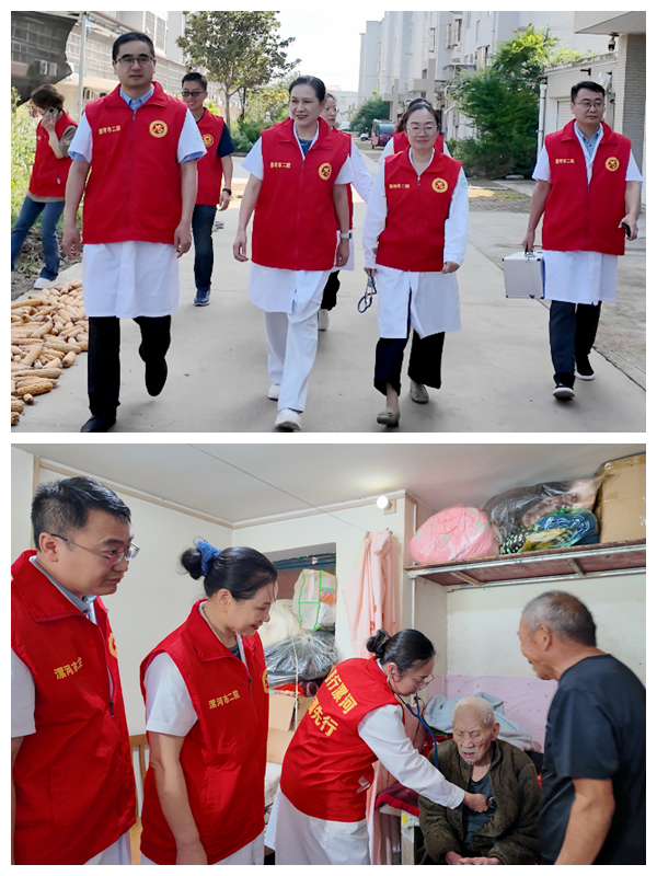 在得知村中兩名百歲老人因行動不便無法前往義診現(xiàn)場后,全國先進工作者、全國“五一”勞動獎?wù)芦@得者、中醫(yī)針灸科主任朱青霞帶領(lǐng)醫(yī)護人員上門為老人服務(wù),進行血壓、血糖測量,心電圖檢查,詢問日常飲食和作息情況等,并根據(jù)老人的身體狀況給予了針對性的建議和康復(fù)指導(dǎo)。醫(yī)護人員還為老人講解了常見疾病的預(yù)防知識,叮囑老人要注意保暖、合理飲食。老人及其家屬對市二院專家團隊的上門服務(wù)感激不已,連聲道謝。