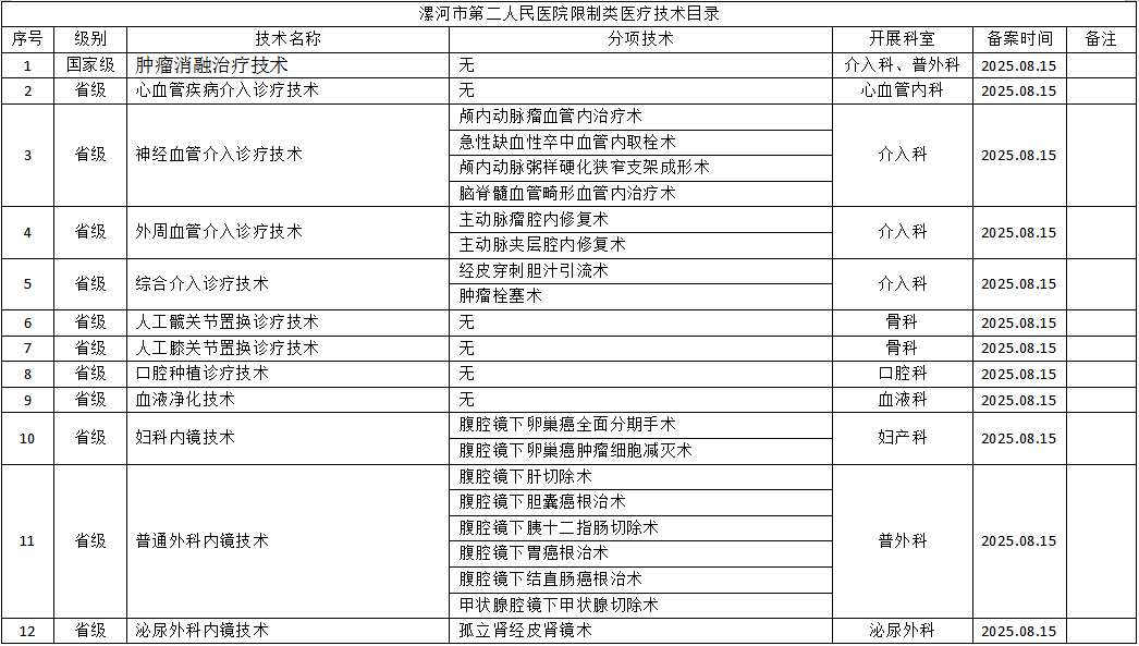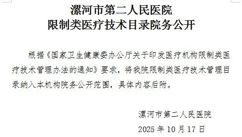 【公示】漯河市第二人民醫(yī)院限制類醫(yī)療技術(shù)目錄院務公開