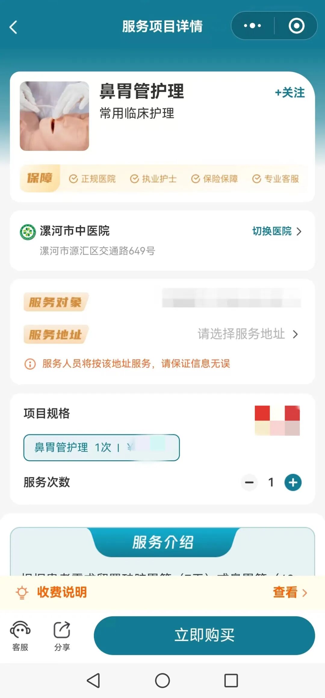 選擇服務: 根據需求,在平臺上選擇所需的護理服務項目,如靜脈采血、更換胃管/尿管、PICC維護、壓瘡護理等。