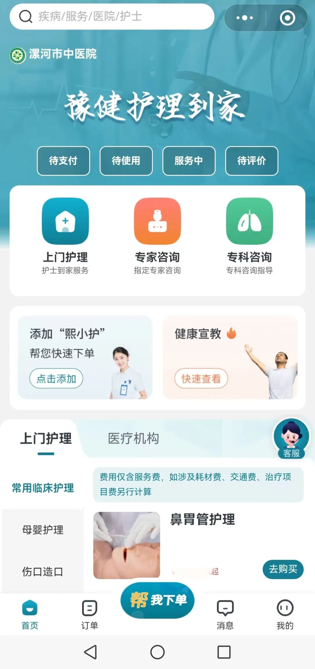 漯河市中醫(yī)院推出的“豫健護理到家”服務,是“互聯網+護理服務”模式的積極探索,將專業(yè)的醫(yī)療護理從醫(yī)院機構延伸至社區(qū)居民家中,既滿足市民居家護理需求,方便特殊群體、減輕家庭照護負擔,也彰顯醫(yī)院社會責任與醫(yī)療溫度,為構建醫(yī)養(yǎng)結合服務體系提供有力支撐。