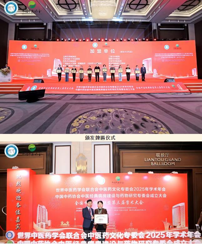 2025 年11月20-23日,世界中醫(yī)藥學會聯(lián)合會中醫(yī)藥文化專委會2025年學術(shù)年會、中國中藥協(xié)會中醫(yī)經(jīng)典病房建設(shè)與藥物研究專會成立大會暨全國中醫(yī)經(jīng)典聯(lián)盟第三屆學術(shù)大會在武漢隆重舉辦。