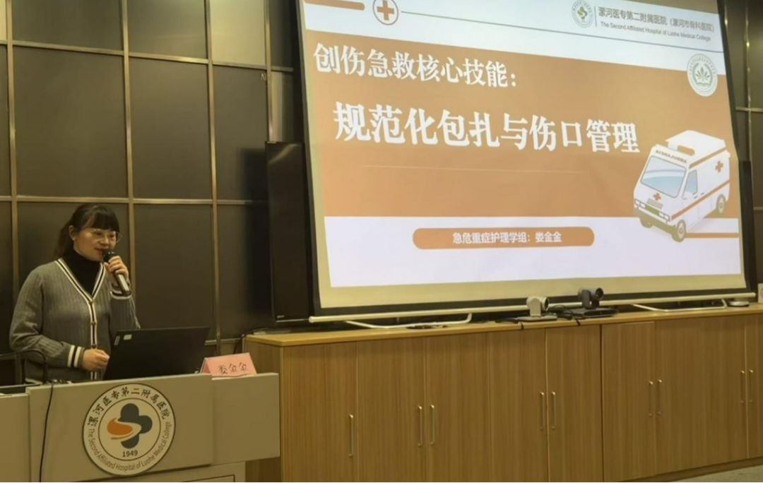 急危重癥護(hù)理學(xué)組組長(zhǎng)婁金金聚焦《創(chuàng)傷急救核心技能:規(guī)范化包扎與傷口管理》,結(jié)合“黃金1小時(shí)”救治原則,強(qiáng)調(diào)包扎操作的時(shí)效性與規(guī)范性,通過對(duì)比不同傷口處理案例,演示正確操作對(duì)控制出血、預(yù)防感染的關(guān)鍵作用,夯實(shí)醫(yī)護(hù)人員的基礎(chǔ)急救能力。
