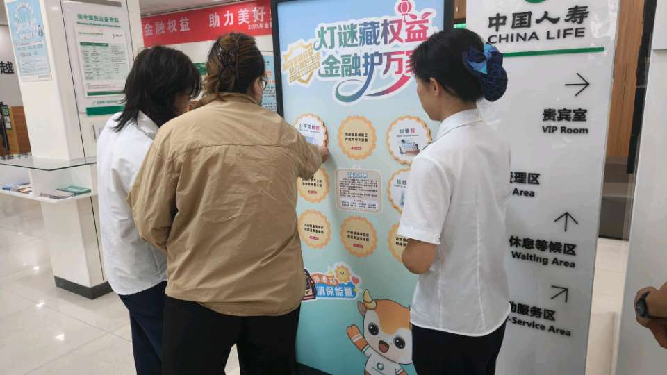 為積極響應(yīng)監(jiān)管部門的號召,切實(shí)提升社會公眾金融素養(yǎng),守護(hù)金融消費(fèi)者合法權(quán)益,在2025年9月15日至21日金融教育宣傳周期間,中國人壽壽險漯河分公司在黃河路柜面消保教育宣傳基地設(shè)置“消保能量加油站”宣傳專區(qū),開展“燈謎藏權(quán)益,金融護(hù)萬家”活動。