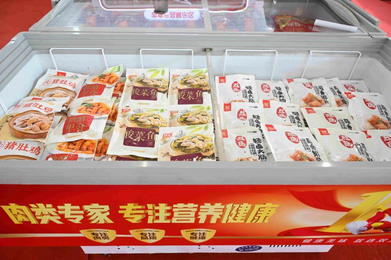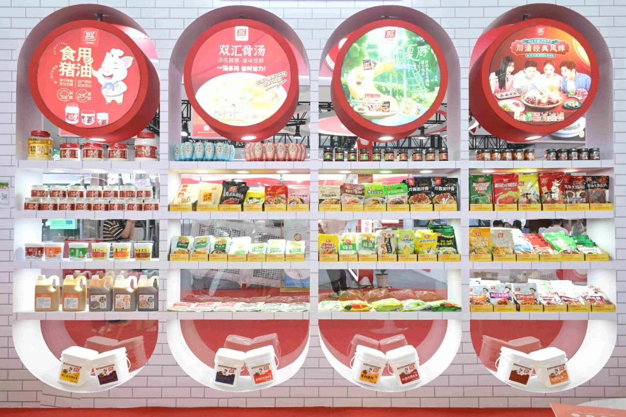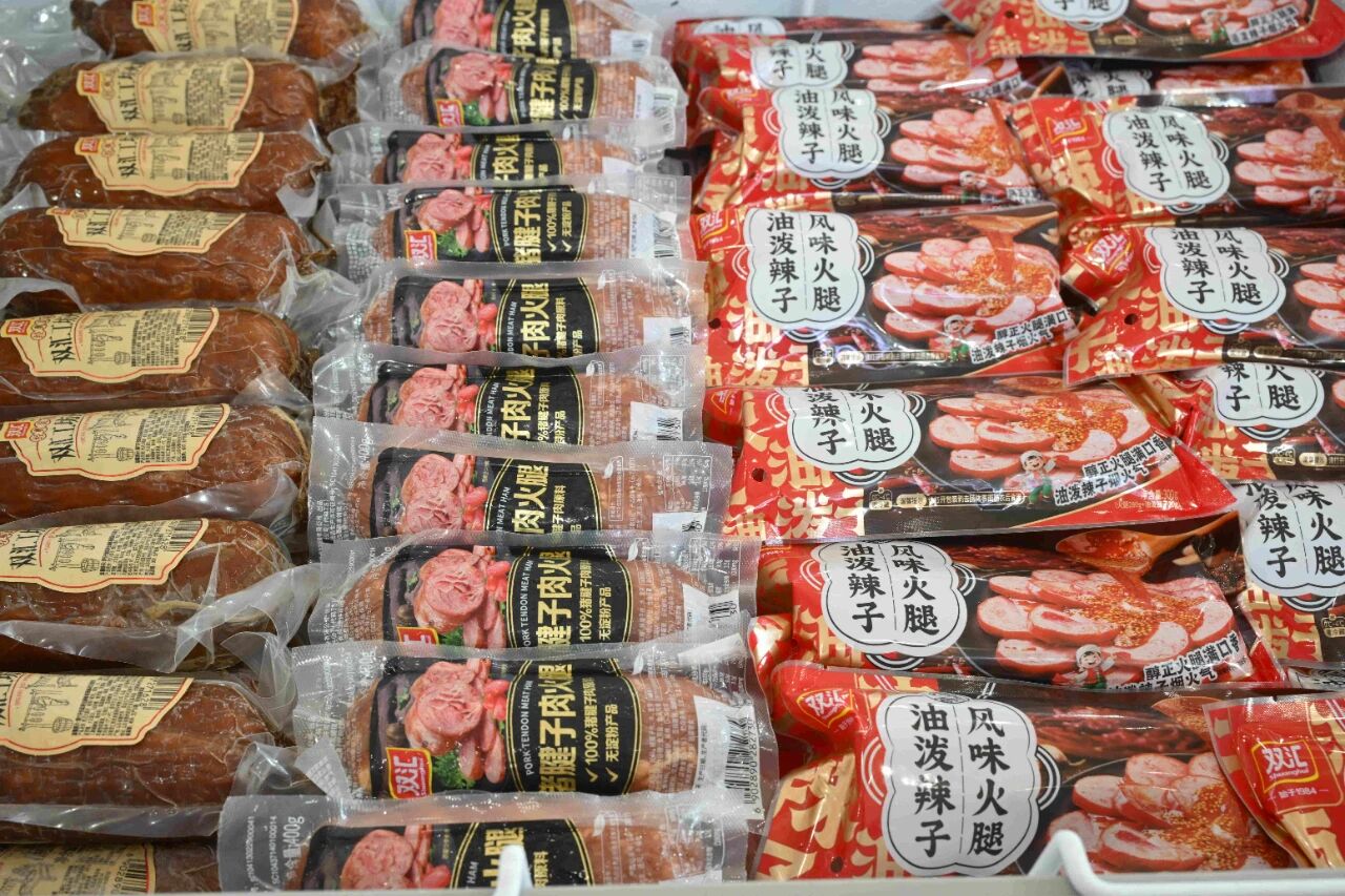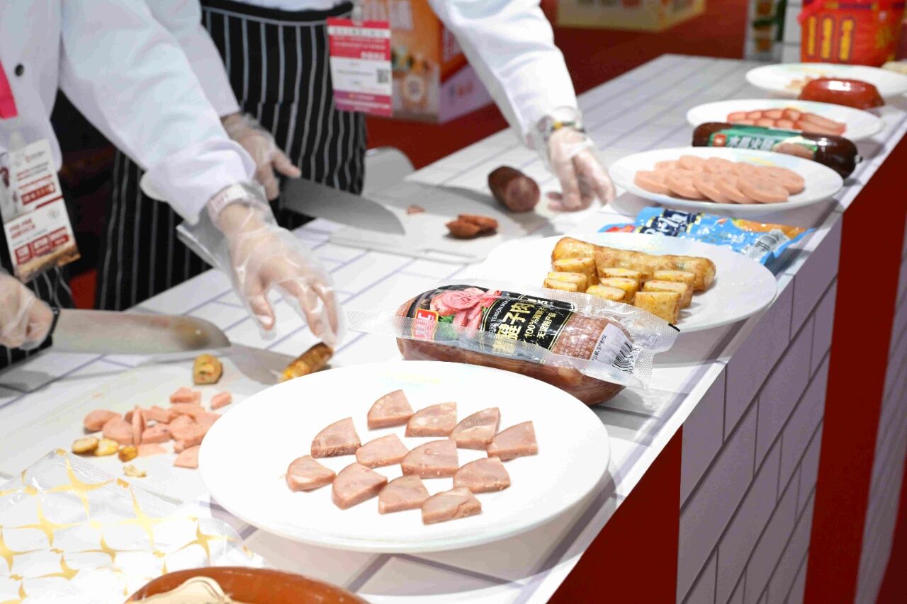 雙匯展廳內(nèi)的展品琳瑯滿目、品類豐富,我們可以看到企業(yè)對(duì)肉類美食的探索,早已從“一支火腿腸”拓展出更多可能。僅肉制品就涵蓋了簡(jiǎn)頌午餐肉、金沙蛋黃腸、豬腱子肉火腿、富樂鹵味腸等特色產(chǎn)品系列,焦香蜜汁腸、塞納諾火腿、山核桃木煙熏原切培根、薩納齊瓊香腸等史蜜斯系列,玉米肉棗腸、脆骨肉條香腸、火爆小郡肝等匯小鋪零食系列,鹵福齋中式產(chǎn)品禮盒系列,招牌面、香菇雞丁米線、酸辣粉等方便速食系列。