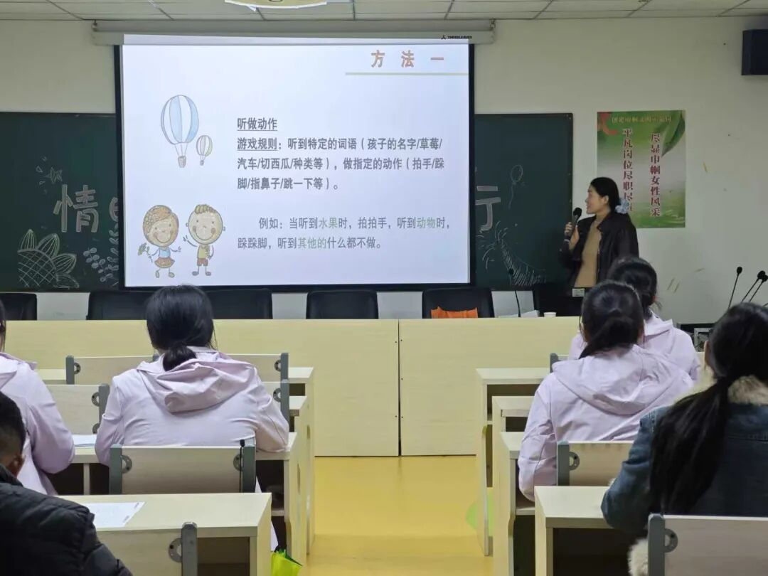 培訓伊始,楊玉婷老師首先通俗講解:“注意力是孩子集中感官與心思做事的能力,對院內孩子而言,更是建立信任、融入集體的關鍵。”她指出,兒童注意力不專注的常見表現(xiàn)包括:聽指令 “左耳進右耳出”、桌面活動 5 分鐘難堅持、眼神游離不愿參與集體,且易因分心出現(xiàn) “學不會、聽不懂” 問題,強調 “這并非故意不聽話,而是需要專業(yè)引導”。
