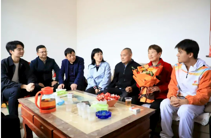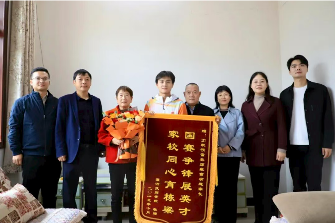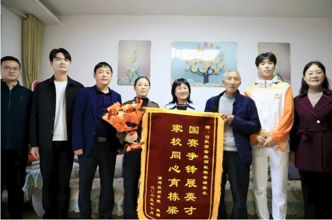 抵達(dá)選手家中后,院領(lǐng)導(dǎo)首先向家長(zhǎng)和選手遞上紅彤彤的錦旗與沉甸甸的慰問(wèn)品,“孩子能站上全國(guó)賽場(chǎng)拿獎(jiǎng)牌,離不開(kāi)家里的支持,也離不開(kāi)學(xué)校的培養(yǎng),這是咱們共同的驕傲!”一句真摯祝賀,瞬間拉近了家校距離。