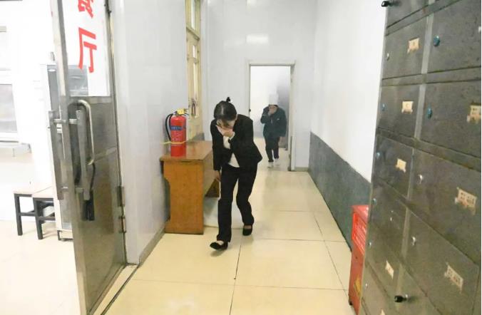 演練模擬了餐廳操作間爐灶周邊易燃物遇明火引發(fā)火災(zāi)的真實場景。隨著演練總指揮、漯河分行黨委書記、行長邢會鋒一聲令下,演練正式開始?,F(xiàn)場工作人員第一時間響應(yīng),按照預(yù)案分工迅速行動:果斷關(guān)閉燃氣總閥門、切斷電源、使用滅火毯覆蓋初期火源、組織人員撤離并開窗通風(fēng)。現(xiàn)場主管楊云超立即向分行安全保衛(wèi)部門負責(zé)人陳鵬成報告險情。