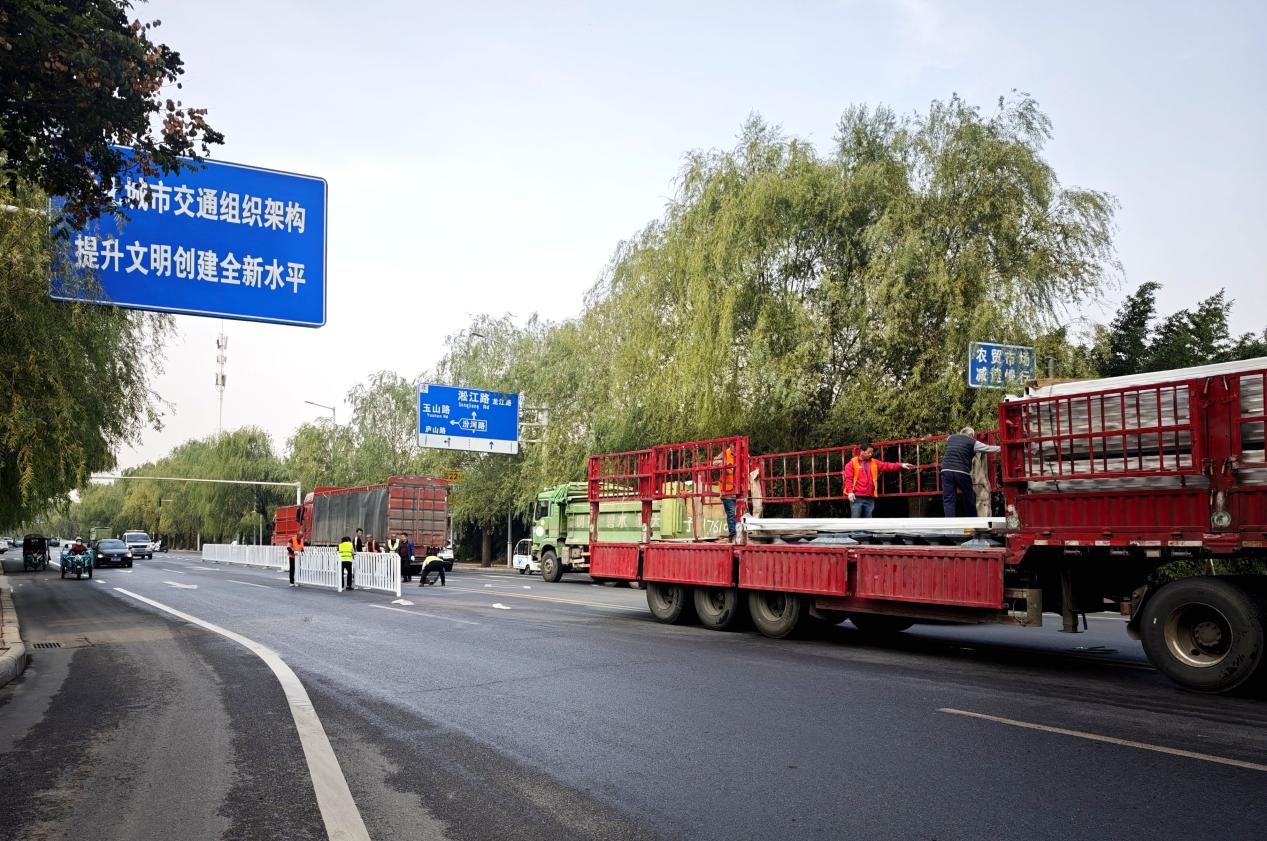 四天“速成”!漯河?xùn)|山路中央分隔帶護欄工程為安全環(huán)?!凹哟a”