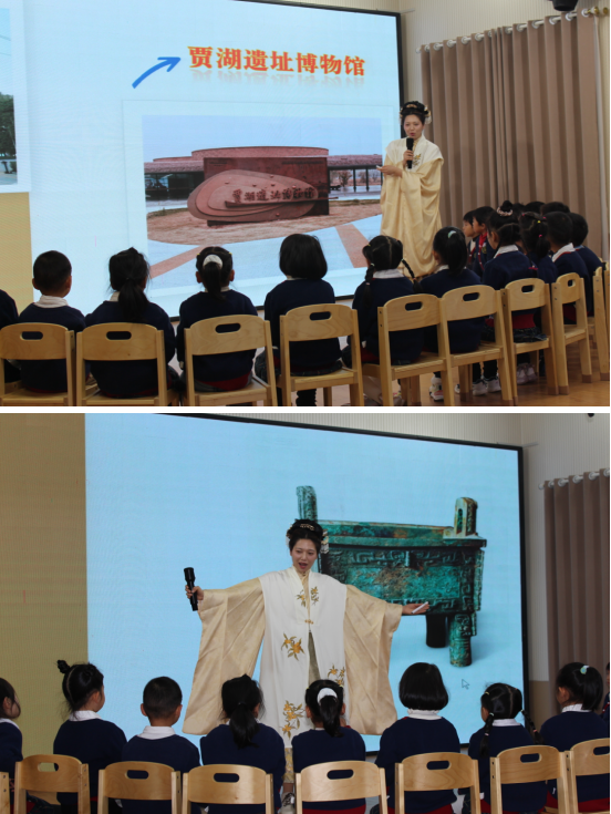 漯河市藝術(shù)幼兒園魏偉老師執(zhí)教的教學(xué)活動(dòng)《假如文物會(huì)說話》,以賈湖骨笛、后母戊鼎等文物為線索,通過聆聽八千年骨笛聲音、“文物回家”地圖互動(dòng)等活動(dòng),讓幼兒觸摸文化根脈、增強(qiáng)民族自豪感,踐行“資源強(qiáng)德”路徑。三節(jié)教育活動(dòng)摒棄說教、善用共情,將思政元素與游戲、體驗(yàn)深度融合,盡顯“隨風(fēng)潛入夜,潤(rùn)物細(xì)無(wú)聲”的教育智慧。
