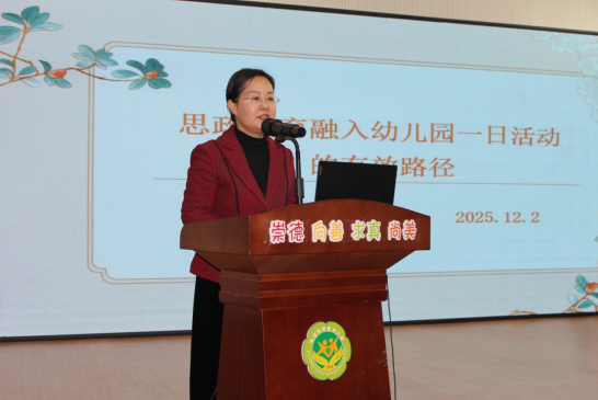 漯河市市直幼兒園黨總支書記王麗亞在致辭中表示,落實(shí)好“立德樹人”根本任務(wù),是時(shí)代賦予我們幼教工作者的神圣使命。要在幼兒純凈的心靈深處播撒真、善、美的種子,培育他們愛祖國(guó)、愛家鄉(xiāng)、愛集體、愛勞動(dòng)的真摯情感,涵養(yǎng)誠(chéng)實(shí)、友善、守紀(jì)的良好品德與行為習(xí)慣,幫助他們扣好人生第一??圩印K?jiǎn)要介紹了市直幼兒園在幼兒思政教育領(lǐng)域的點(diǎn)滴探索與心得體會(huì),期待在接下來(lái)的活動(dòng)中與教育同仁互學(xué)互鑒、凝聚智慧,共同探尋科學(xué)育人路徑,筑牢幼兒品德根基。