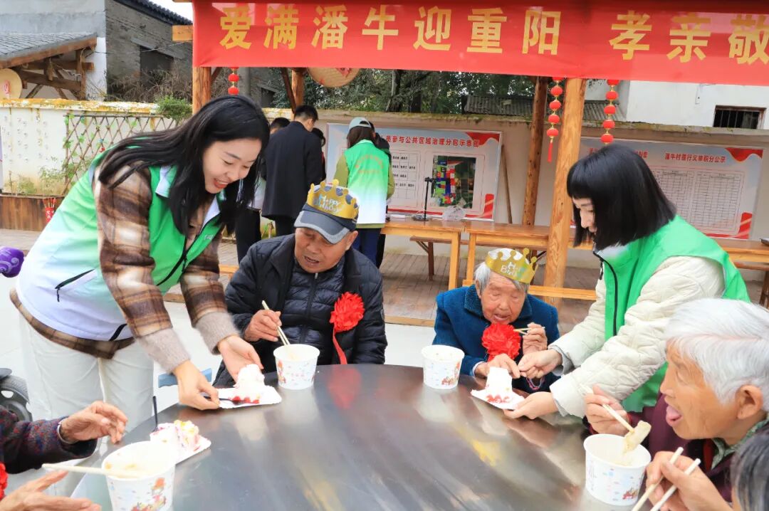 幸福苑內,“壽星賀重陽”儀式溫馨舉行。駐村第一書記趙基元與志愿者們?yōu)榇謇?0歲以上高齡老人佩戴大紅花、生日帽,送上定制壽星大蛋糕。“沒想到這么大年紀,村里還一直惦記著我們……”91歲的賈奶奶激動不已,樸實話語里滿是感動。