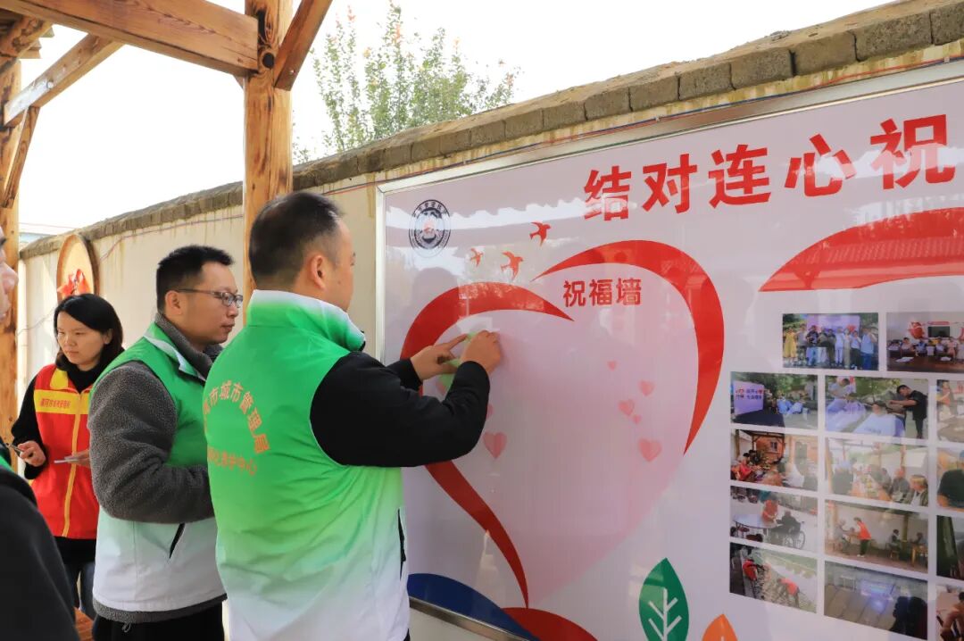 “駐村不僅是駐在村里,更要駐進老百姓心里,把溫暖送到村民心坎上。”駐村第一書記趙基元站在“結對連心祝福墻”旁道出活動初衷,身后的墻上,他與志愿者們寫下一張張心愿卡片:“愿潘牛村愈發(fā)美麗,村民們健康長壽”。