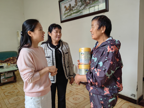 活動中,鎮(zhèn)婦聯(lián)工作人員與巾幗志愿者一同深入各村,走訪慰問了轄區(qū)7個困境兒童家庭。每到一處,李主席都與孩子監(jiān)護人親切交談,詳細詢問孩子們近期的生活狀況、身體狀況和學習情況,耐心傾聽他們的心聲和實際困難,并為孩子們送上了精心準備的優(yōu)質奶粉,叮囑家長要科學喂養(yǎng),關注孩子的營養(yǎng)健康。